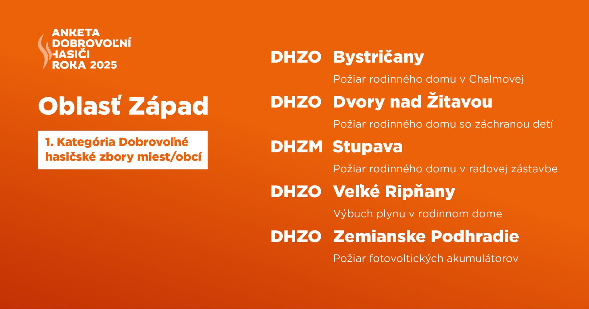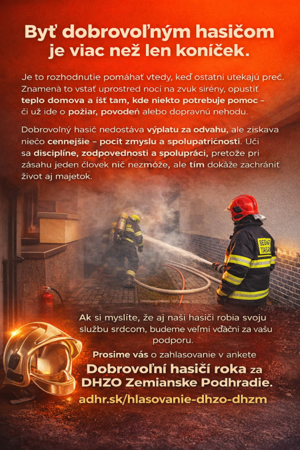 Sme nesmierne vďační,že DHZO Zemianske Podhradie postúpilo medzi finalistov súťaže Dobrovoľní hasiči roka 2025.